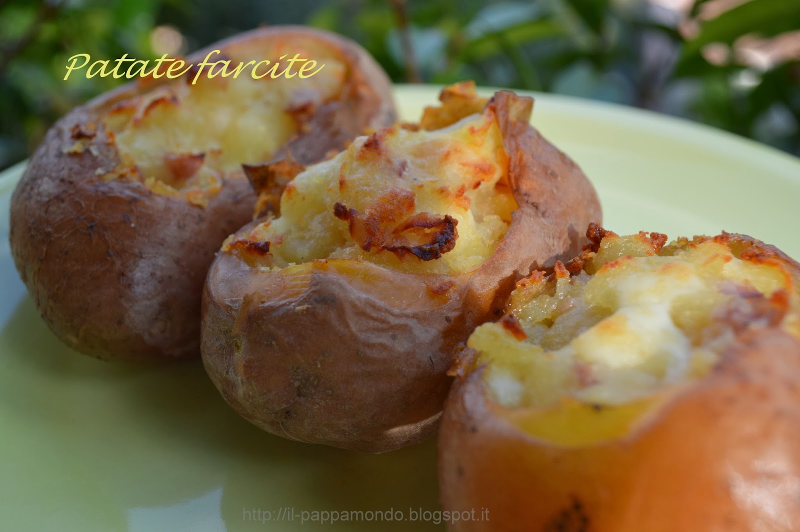 Vabbè, allora in controtendenza con tutta la blogsfera, dove pullulano – giustamente – biscotti profumati e super-decorati, io vi propino queste gustose patate ripiene e poi ripassate in forno. Sono un buon contorno e, anzi, a seconda del ripieno ( di quanto decidiamo di caricarlo!!!!) possono costituire anche un secondo piatto. Sono veloci, semplici e furbissime perchè ti permettono di “infilarci” ciò che si ha in casa o che si necessita di smaltire.